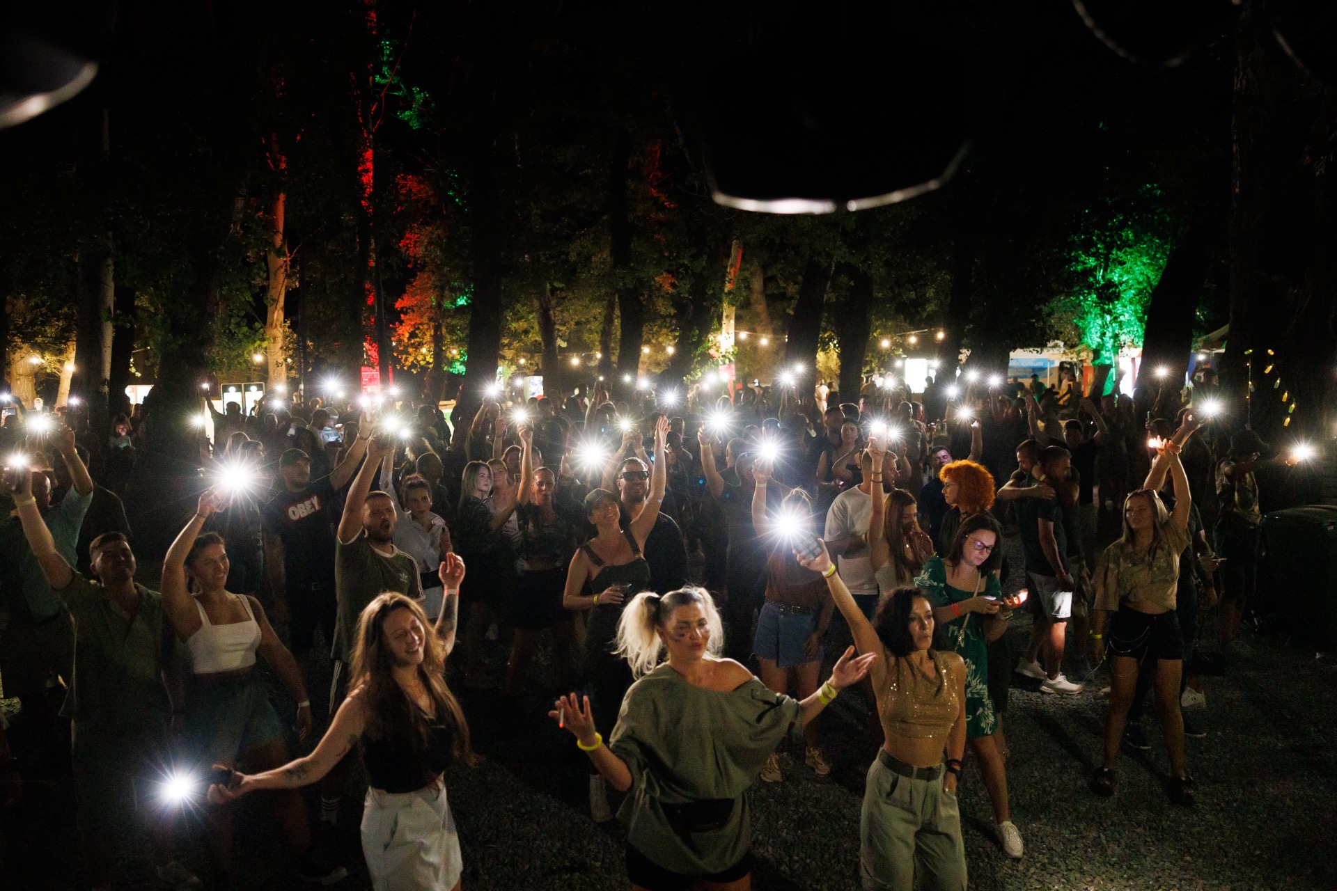 Traversarea Dunării este doar începutul. Odată ajuns pe malul opus, te întâmpină o pădure transformată într-un spațiu de evadare - cu scenă, lumini, sunet profesionist și o atmosferă pe care nu o găsești nicăieri altundeva.